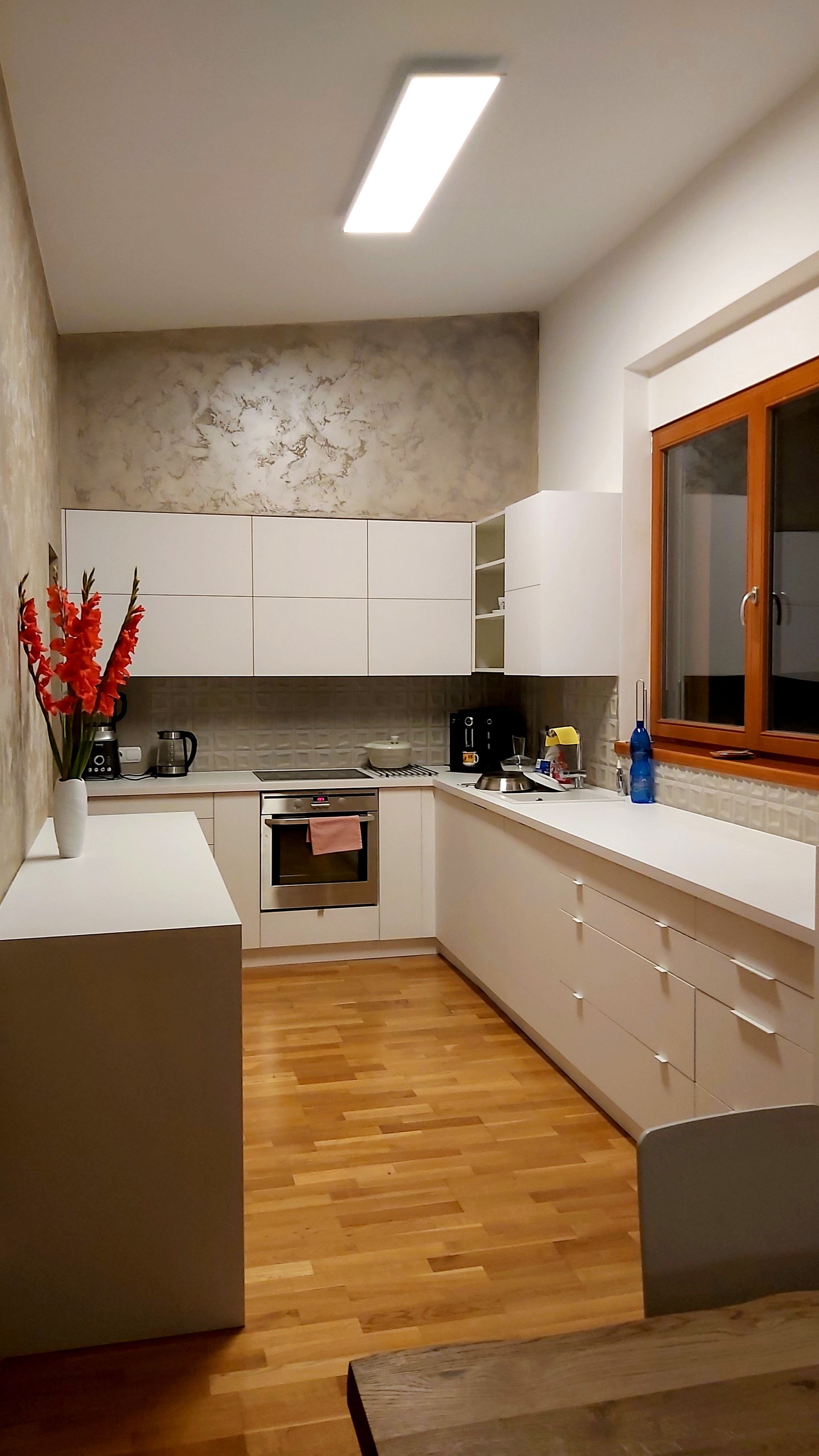 Pro tento projekt jsme navrhli a realizovali novou kuchyni a koupelnu, které propojuje čistý, nadčasový styl a funkčnost.