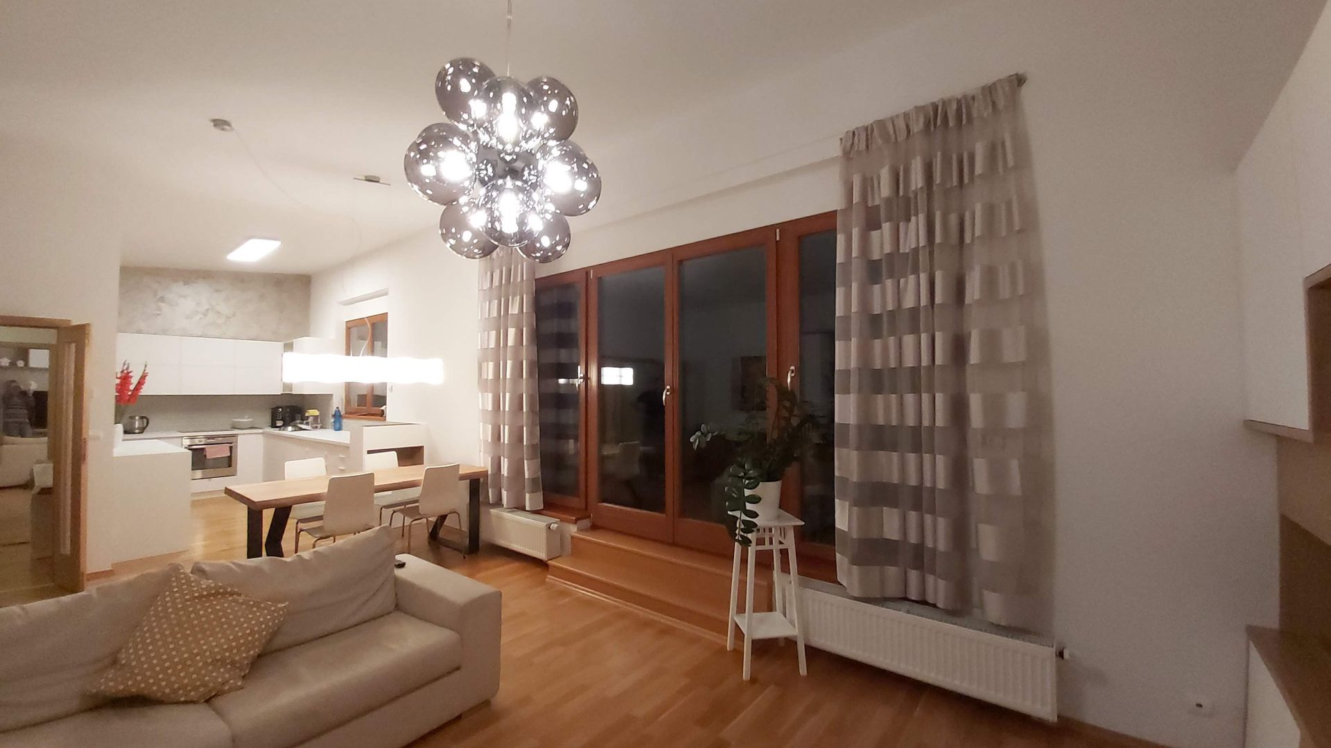 Obývací pokoj a jídelna dostaly nový charakter díky kombinaci přírodních materiálů, moderního nábytku a dekorací, které celý prostor projasnily a zútulnily. Ložnici majitelky jsme proměnili v elegantní boudoir – místo klidu a ženské energie. Nezapomnělo se ani na pokoj mladšího syna, nadšeného fotbalisty a malíře, kterému jsme vytvořili prostor odpovídající jeho zájmům i věku.