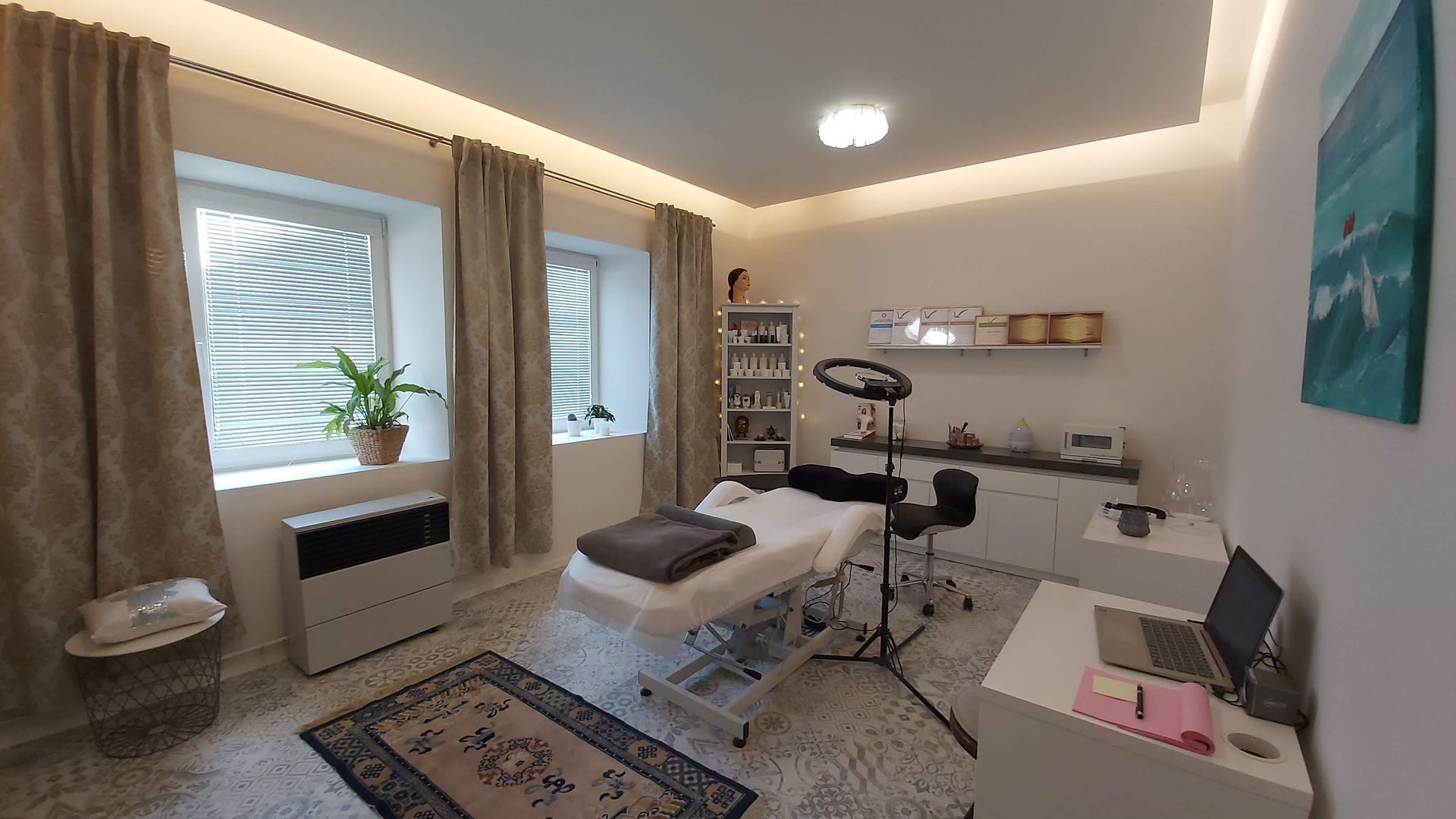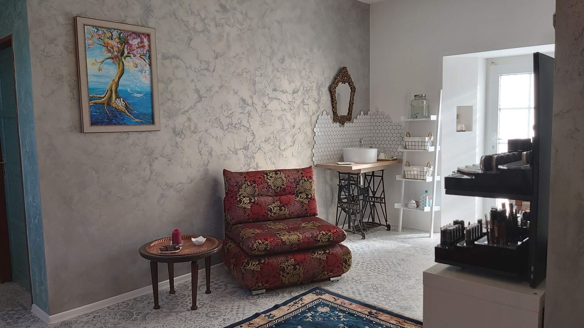 Naším úkolem bylo proměnit prázdné prostory, rozdělené na několik samostatných místností, v útulné a reprezentativní kosmetické studio. Dispozice zahrnovala recepci, kosmetickou a masážní místnost, centrální prostor i kadeřnictví.