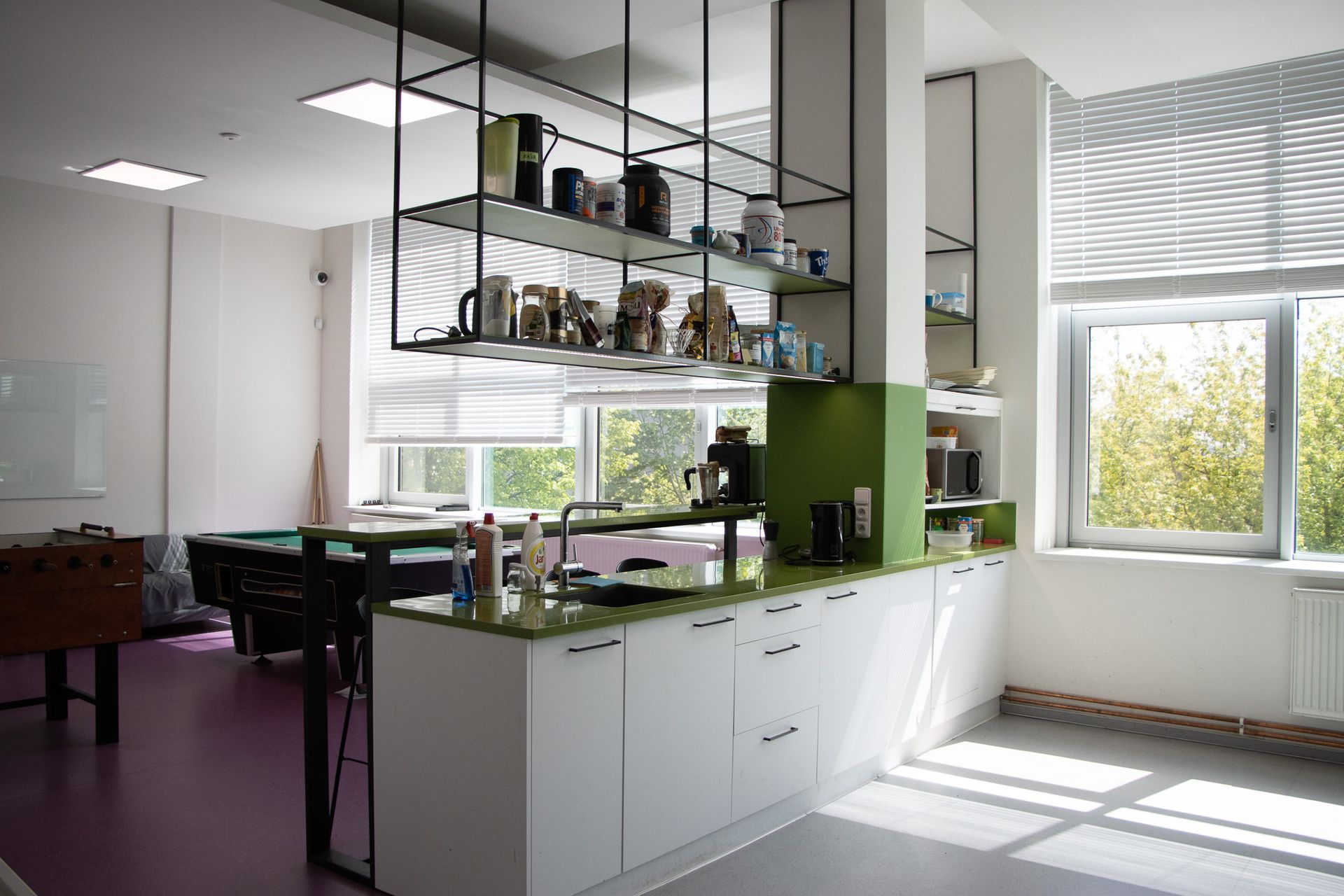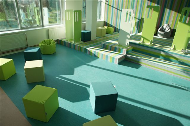Prostor je přívětivý, odolný a připravený na každodenní provoz.