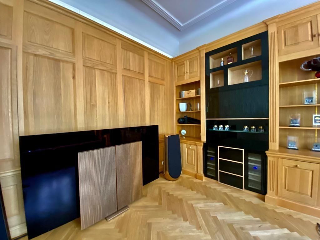 Naším úkolem bylo začlenit moderní vinotéku do historického interiéru prestižního secesního domu v Pařížské ulici. Majitelé si přáli využít prázdnou niku ve stávající obývákové stěně a proměnit ji v elegantní prostor pro uložení vín.